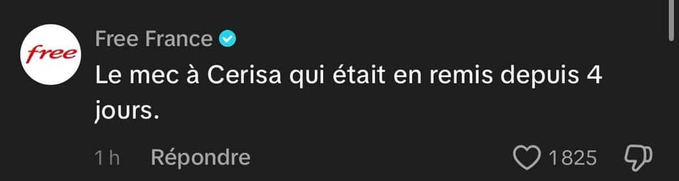 D’autres géants comme Danette France, free, ou encore Adopte Parfum ont compris que l’influence passait aussi par l’espace commentaire. En interagissant avec ces contenus avec humour, elles humanisent leur image et boostent leur algorithme sans dépenser un centime.
